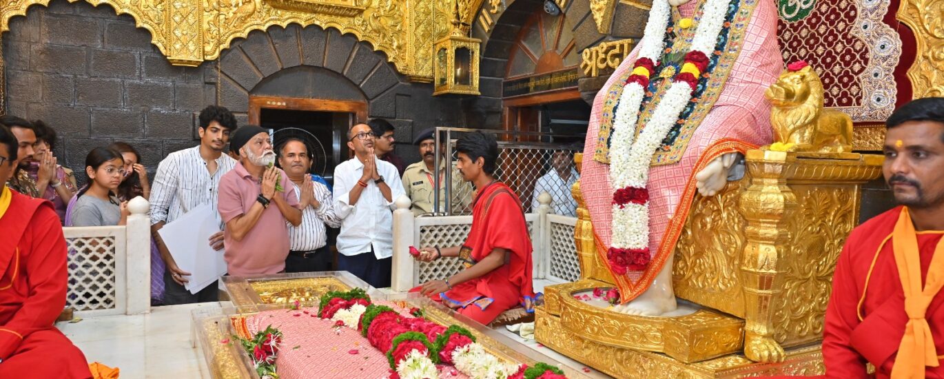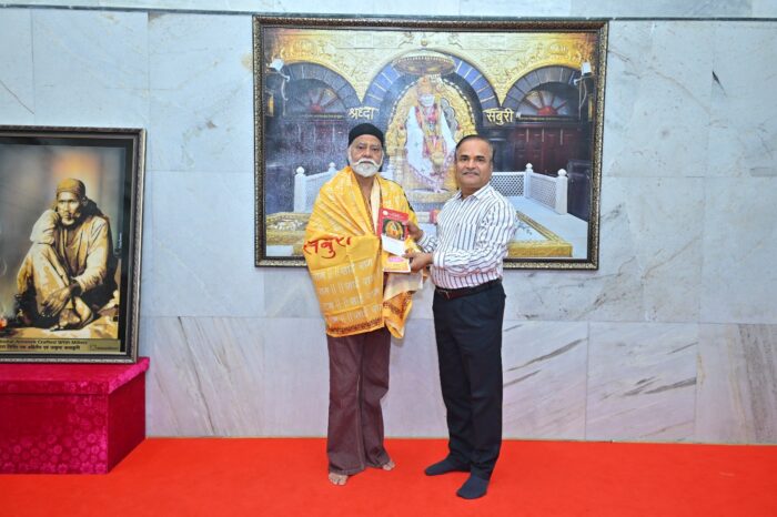 Renowned Bollywood actor Sanjay Mishra visited the holy shrine of Shri Sai Baba in Shirdi today to seek blessings for his upcoming film, Tera Sai. Accompanied by the entire film crew, Mishra offered prayers at the Samadhi Mandir. Following the darshan, he was formally felicitated on behalf of the Shri Saibaba Sansthan Trust by Bhimraj Darade, the Deputy Chief Executive Officer.